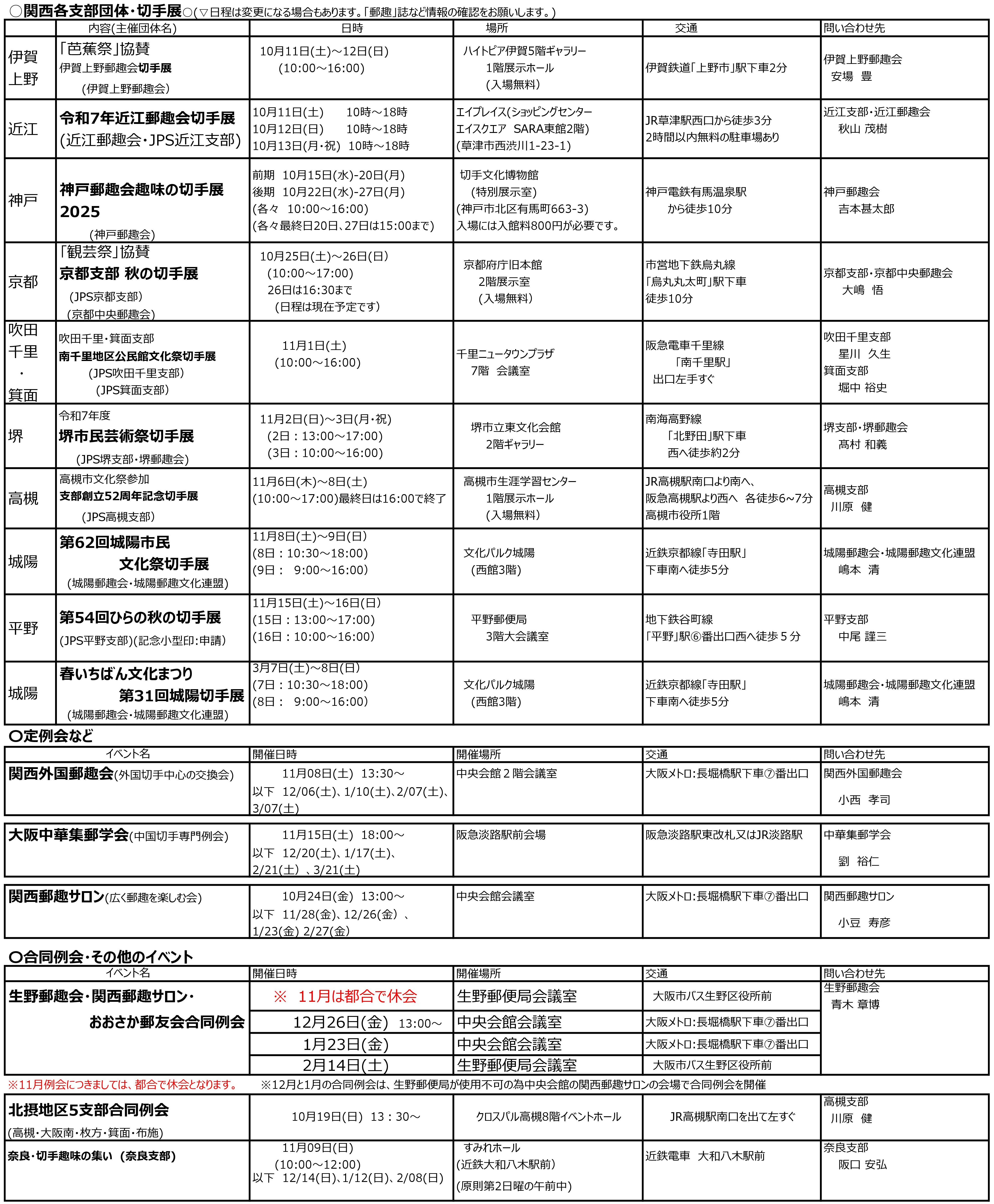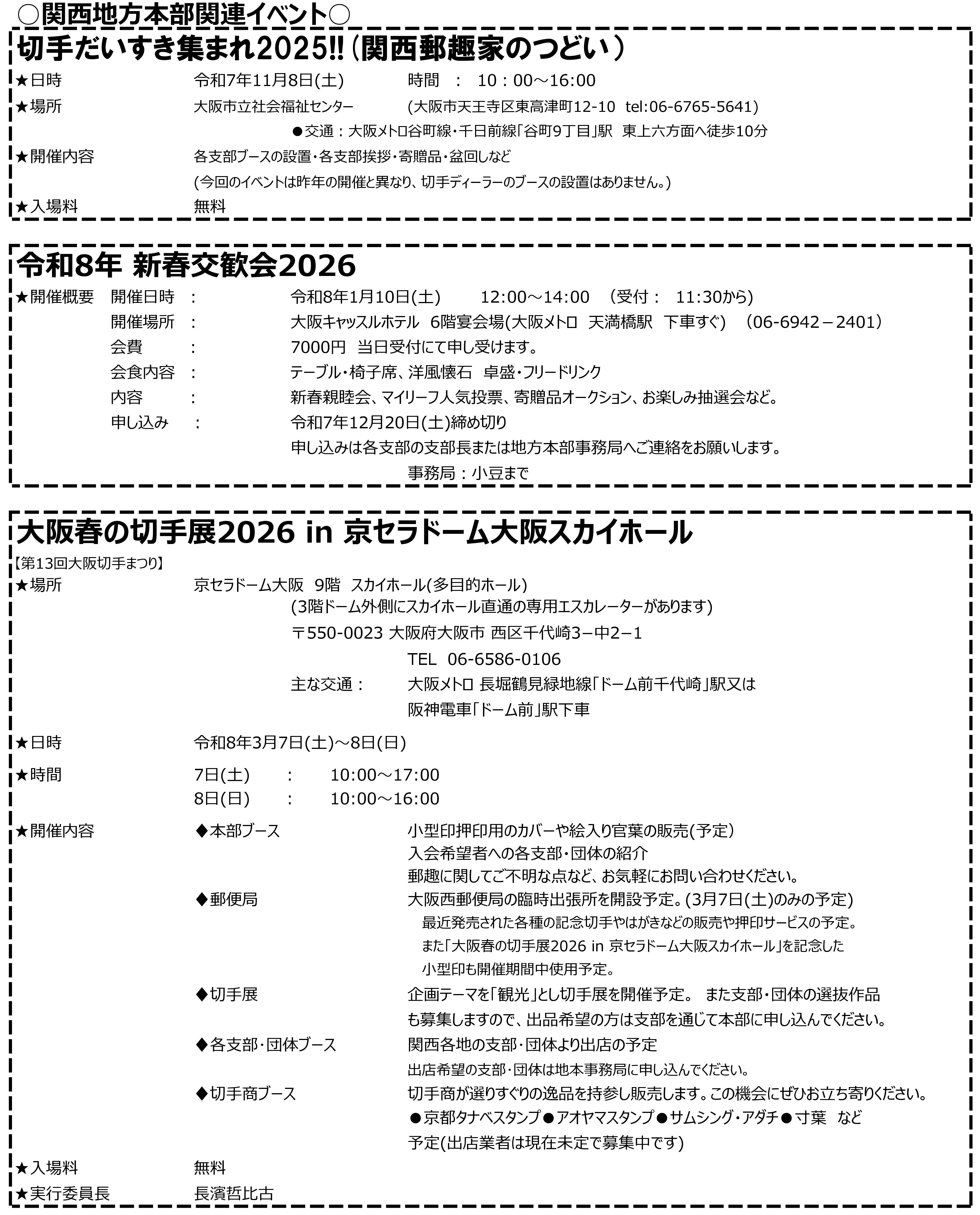 ■下記掲載のイベントにつきましては「郵趣」誌などでもご確認ください。